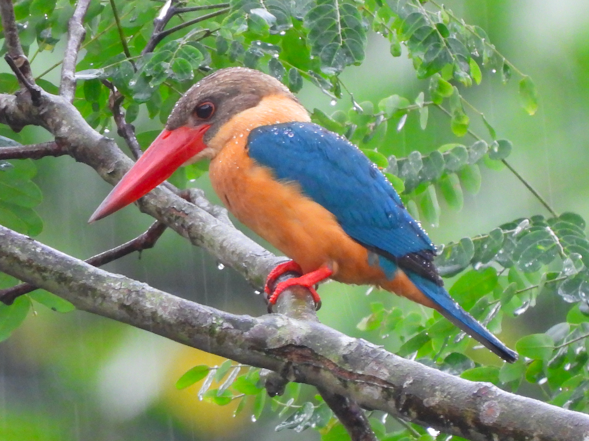 The kingfishers (family Alcedinidae) are a diverse family of birds belonging to the order Coraciiformes distributed across all continents except the polar regions. Albeit being most popular for their skillful fishing technique, unique morphology featuring bright plumages, large bills and extremely short tails and legs, the majority of the family members are actually distributed in tropical rainforests and do not really rely on water bodies but rather hunt on large insects and small vertebrates. Both sexes are generally similar, and they usually nest in holes often dug by themselves in sandbanks.