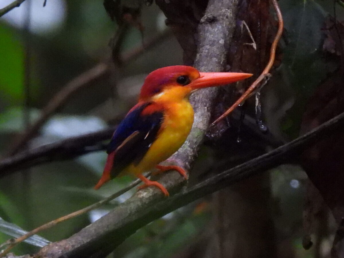 Distributed along the Malay Peninsula, Palawan, Borneo, Sumatra and Java east to Nusa Tenggara. Despite its very bright plumage, it keeps a very low profile in the shadiest spots of rainforests, often near flowing streams. I have seen this species in Borneo.