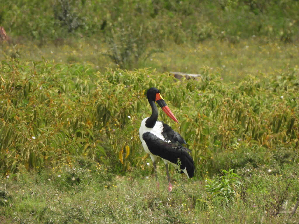 Found in pristine wetlands and riverine habitats throughout Subsaharan Africa. Scarce, localized and near threatened. Its red and black bill with a namesake yellow “saddle” near the front is unique among storks. I have encountered this species in Lake Oloiden, Kenya.