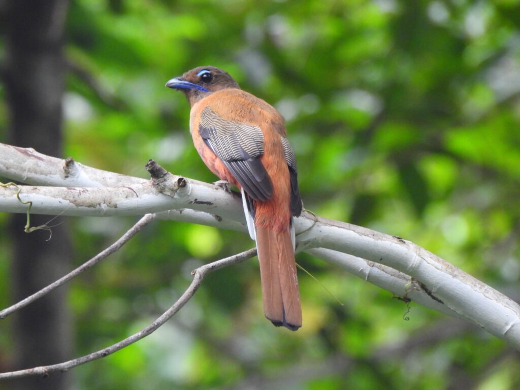 Distributed along lowland and foothill broadleaf forests of the Malay Peninsula, Sumatra and Borneo. Both sexes show a dark head — brown in females and jet black in males. I have encountered this species in Borneo.