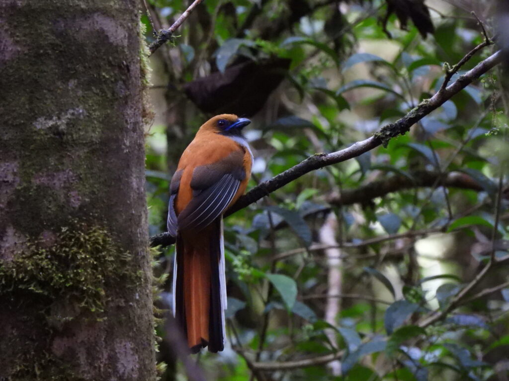 Endemic to montane rainforests of central and north Borneo, with a very restricted distribution range. Both sexes show a distinct silver bib. Among trogons, it is a particularly silent species. I have observed this species in Borneo.