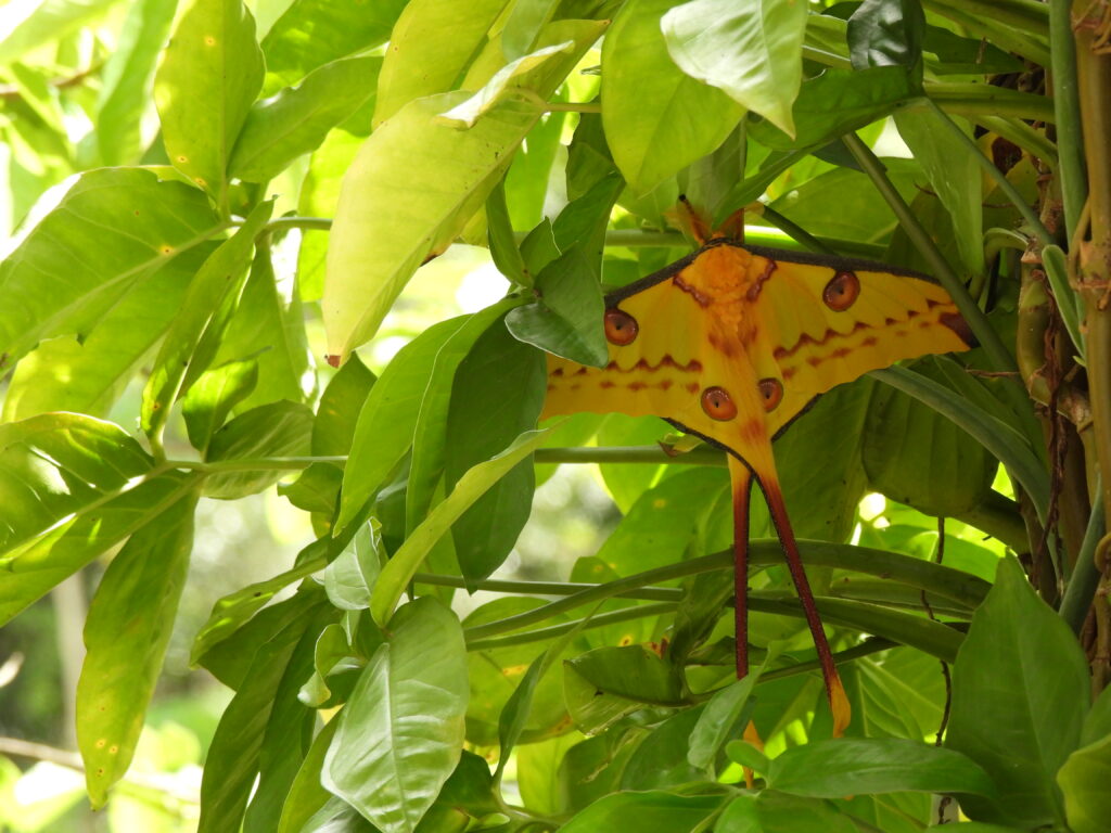 Madagascar comet moth (Argema mittrei) at the entrance of CVB, 17 Nov 2023