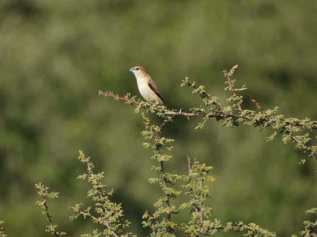 Additional highlights came in the form of small flocks of Indian silverbills (Euodice malabarica) in the reeds and a few Namaqua doves (Oena capensis) perched on the cables surrounding the farm.