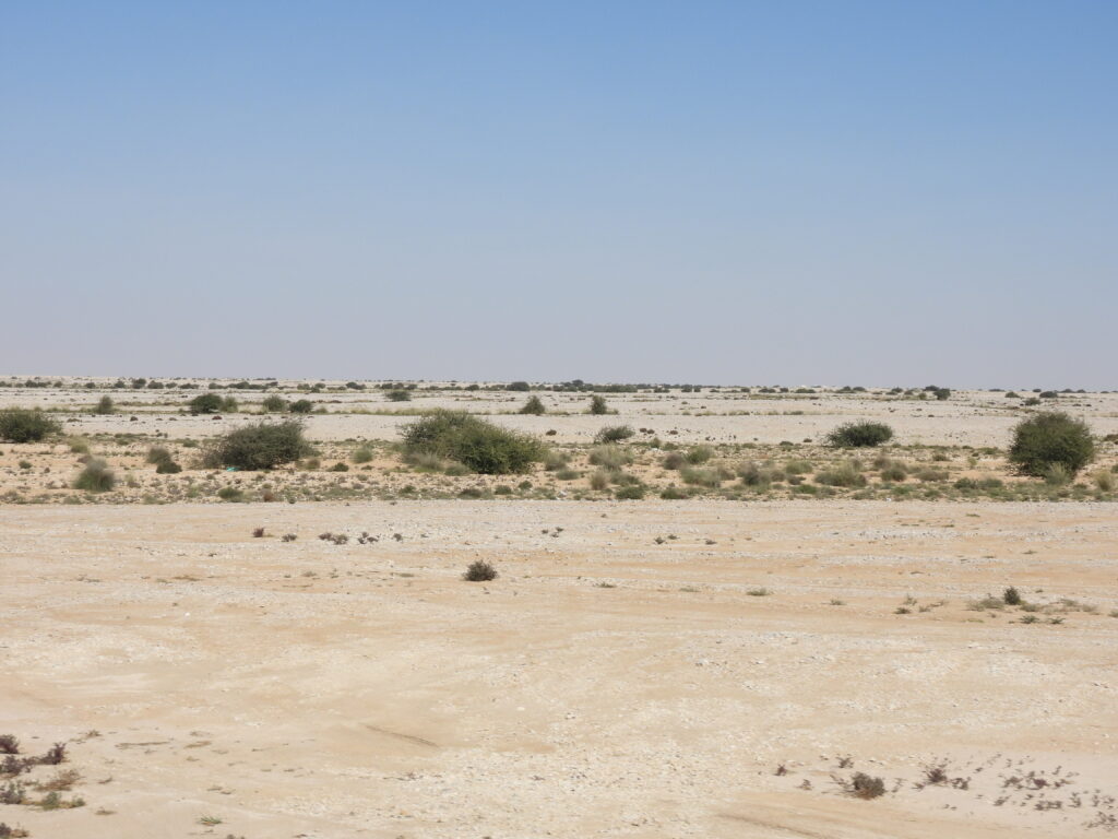 We parked the car on the outskirts of Al Wakra once the road became too tricky for our rental car. Our target spot, some sort of oasis with greener shrubbery in the middle of the desert, was still some 20 minutes’ walk away under the sun (of January, for what it’s worth). Already upon arrival, we connected with Egyptian spiny‑tailed lizards (Uromastyx aegyptia) and flushed a flock of introduced gray francolins (Ortygornis pondicerianus).