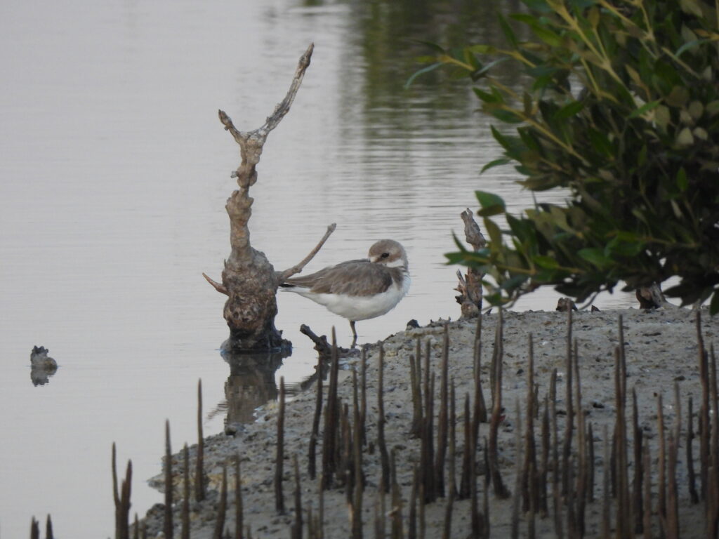 Sunset on Purple Island was truly scenic. A number of waders were present along the shore, including at least one greater sand plover (Anarhynchus leschenaultii) and a common ringed plover (Charadrius hiaticula) among some unidentified plovers and pips. Shallow waters further offshore held small flocks of flamingos (Phoenicopterus roseus), curlews (Numenius arquata), black‑tailed godwits (Limosa lapponica), dunlins (Calidris canutus) and oystercatchers (Haematopus ostralegus).