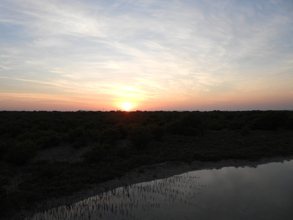 We took it more calmly for the rest of the day, heading to Purple Island on the northeast coast to enjoy the sunset. The views were truly amazing. A boardwalk with watchtowers connects a parking lot on the peninsula to a sandy island through a mangrove forest.