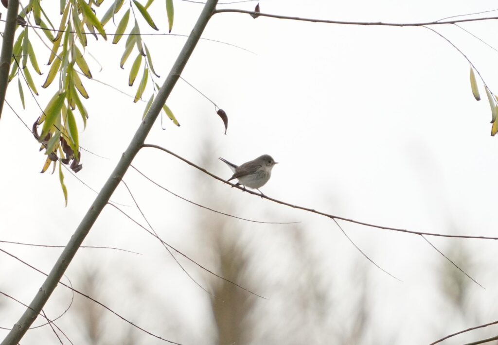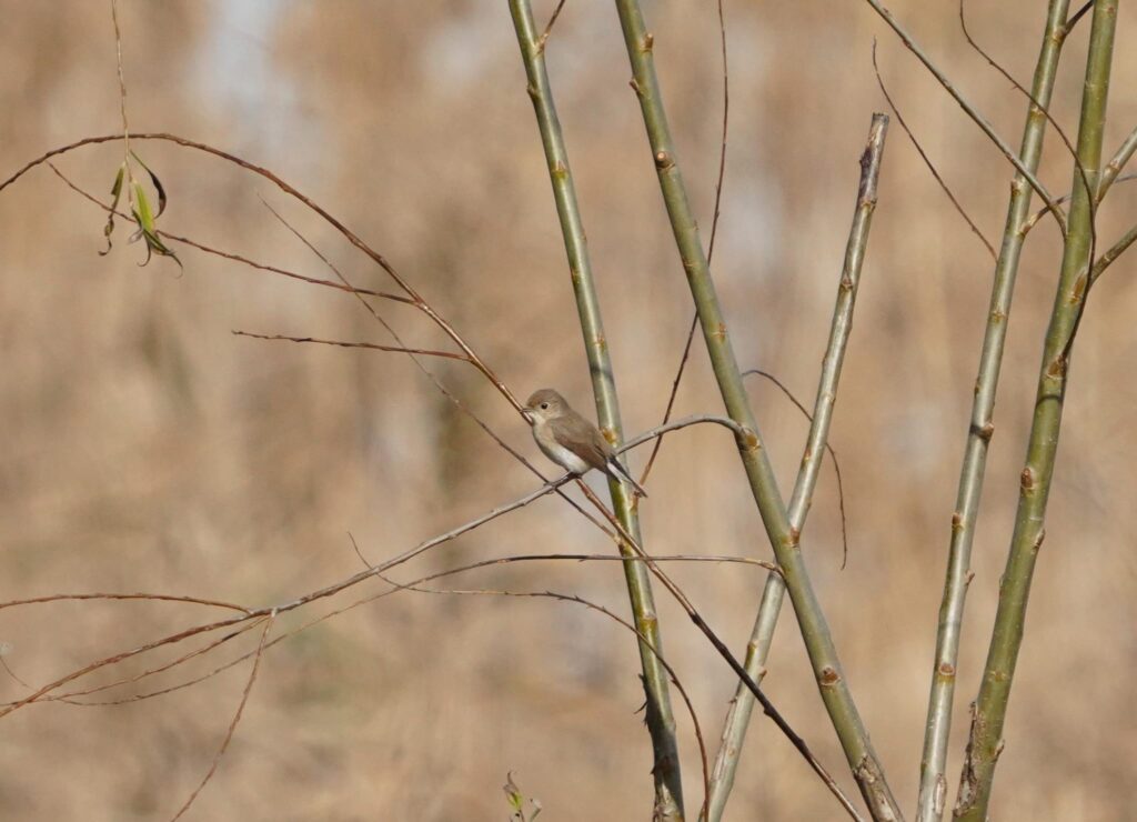 The biggest surprise came while looking for a greater spotted eagle from the car as we drove along the eucalyptus line road. I was sitting on the wrong side of the car, meaning I would not get eyes on a nominate adult perched on a nearby tree. Instead, I focused on the passerines in the reeds. Among the numerous chiffchaffs (Phylloscopus collybita), one bird stood out like a sore thumb. With the naked eye, I noticed a small, round, brown, drab bird flying between willows on the other side of a ditch parallel to the road. The observation was very brief but enough for me to catch distinctive white flashes on the tail and a flycatcher-like jizz when perching. I quickly asked Tati to pull over and alerted everyone to my finding of a flycatcher on a date when none are regular in the area. I saw the bird perch for a couple of seconds, wagging its tail, before it flew into the reeds — to my surprise. I immediately thought this bird could only be one thing. Sadly, none of my friends managed to connect with it properly at that moment.