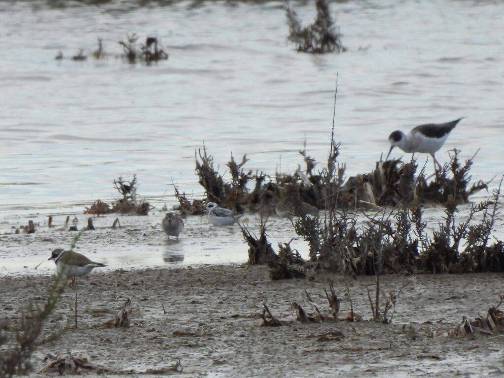 The strong and persistent winds might have helped a first-winter little gull (Hydrocoloeus minutus) end up in Clot de Galvany, roosting with black-headed gulls (Chroicocephalus ridibundus). Despite connecting with this bird on site, I got even better views of the species in Lagunas de la Mata–Torrevieja, where I found an adult and Darío found a first-winter bird, both hovering like butterflies over the hypersaline lake during a visit with friends. However, my bird that day had to be a red-necked phalarope (Phalaropus lobatus) — a bird that oddly spent the entire winter in the area mixed with sanderlings (Calidris alba) and dunlins (Calidris alpina) but had eluded us for months. A nemesis finally coming to an end.