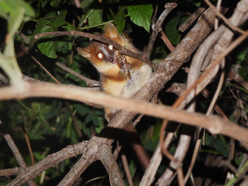 The guide offered to walk me back to camp but we were actually next to his village, so I preferred to walk the 30 min back by myself. The haunting night sounds became even more overwhelming at a certain point where my torch ran out of battery. Luckily I could just follow the road back to camp. Plus, by then, I managed to spotlight the two mouse lemur species in the area: the gray mouse lemur (Microcebus murinus) and the lake-endemic golden-brown mouse lemur (Microcebus ravelobensis), while Milne-Edward’s sportive lemurs.