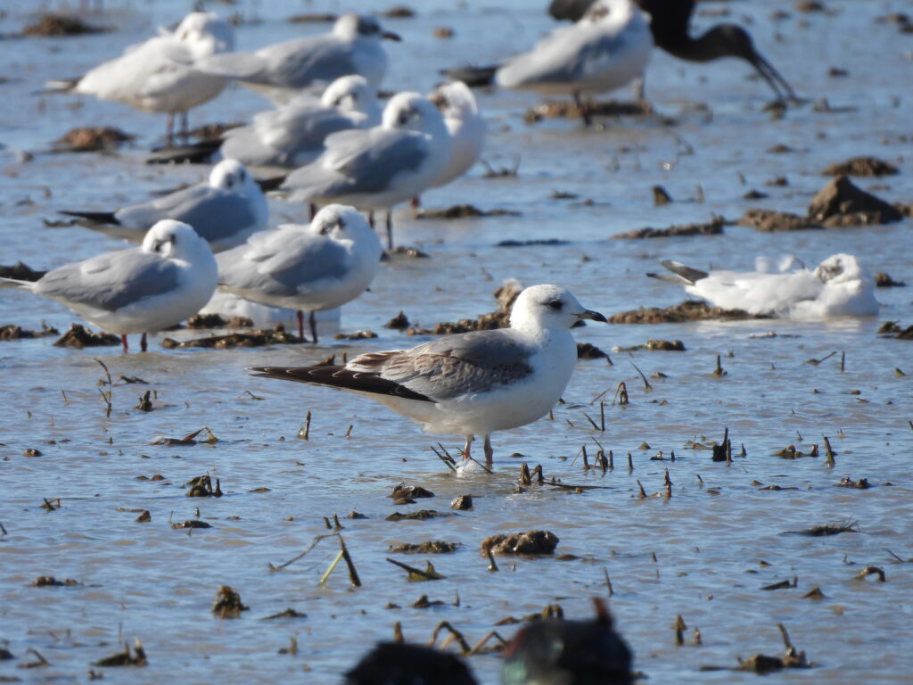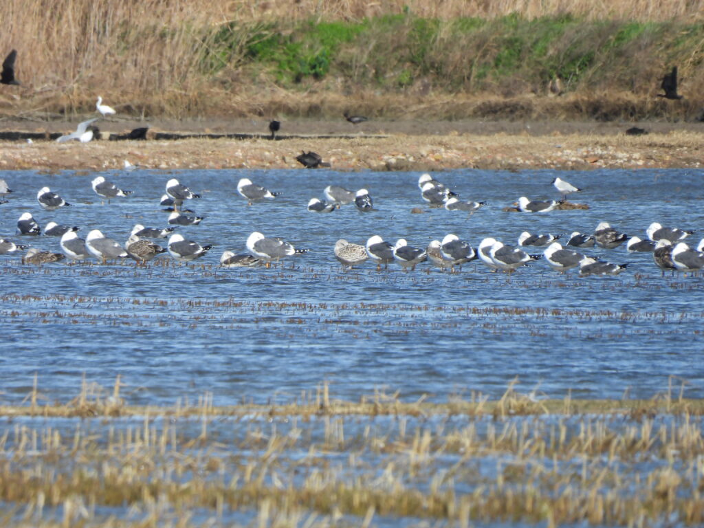 On the south side of l’Albufera, we noted other interesting individuals among the lesser black-backed gull flocks, including good candidates for subspecies intermedius — darker hue in mantle, longer primary projections… — among the abundant graellsii. Thanks, Martín, for the insights!