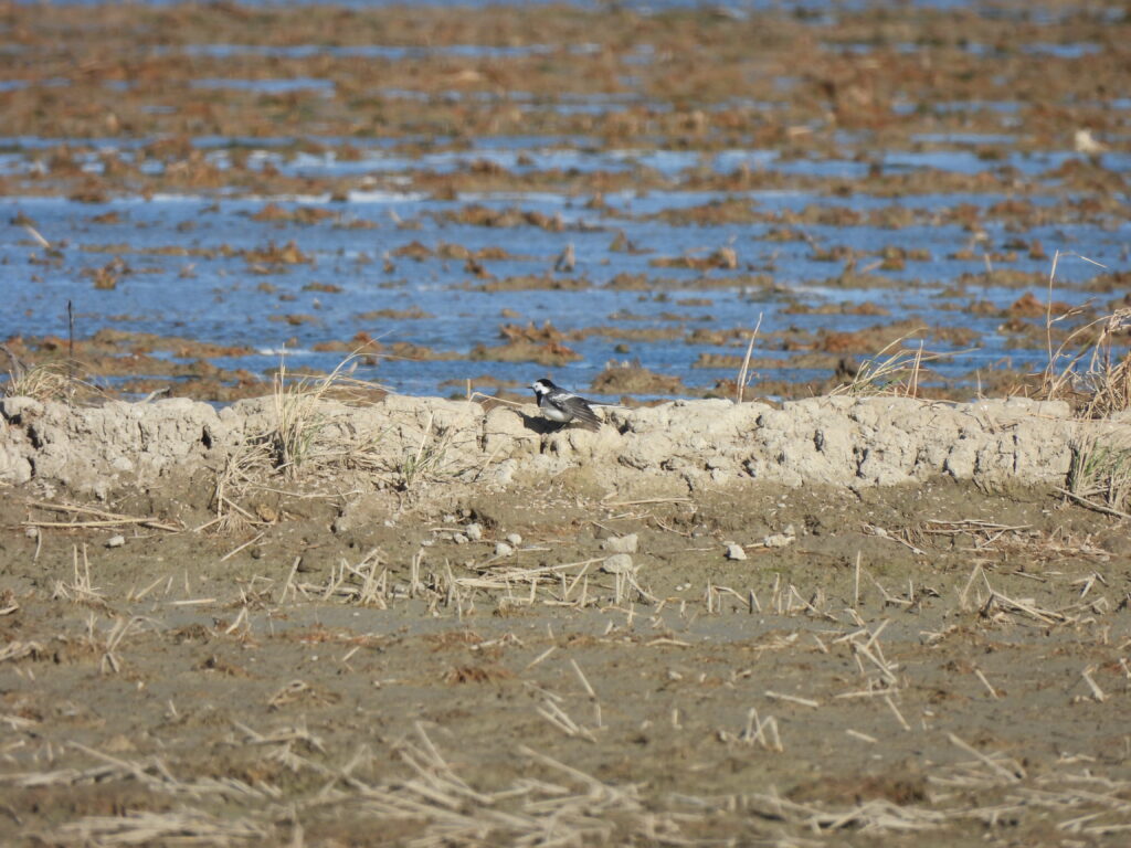 Scanning the fields also produced flocks with good numbers of northern lapwings (Vanellus vanellus), golden plovers (Pluvialis apricaria), ruffs (Calidris pugnax), black-tailed godwits (Limosa limosa), as well as some greenshanks (Tringa nebularia) and dunlins (Calidris alpina). Among uncommon wintering species, we connected with up to 12 whiskered terns (Chlidonias hybrida), a white stork (Ciconia ciconia) and a black stork (Ciconia nigra), all enduring very strong wind conditions. Struggling to keep up, we eventually called it a day after finding a “piedyarrellii among nominate white wagtails (Motacilla alba) and meadow pipits (Anthus pratensis).