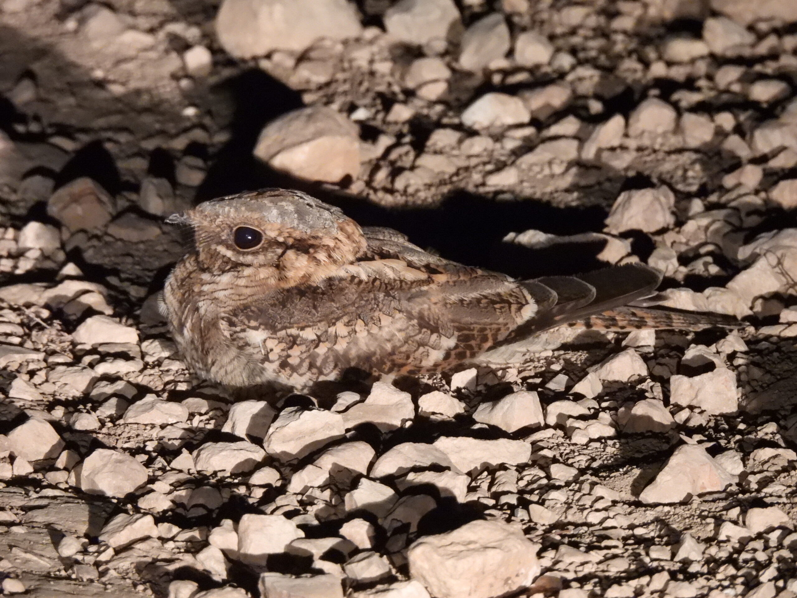 The nightjars (family Caprimulgidae) are a family of birds belonging to the order Caprimulgiformes. These nocturnal birds occur in all continents except Antarctica. They are aerial feeders, flying mostly at night to capture preys with their wide mouth flanked by sensitive whisker-like feathers, and spend the day at roost hidden thanks to their cryptic plumages, either on branches or directly on the ground. Some members of this family are unique among birds by undergoing a dormancy period in winter.