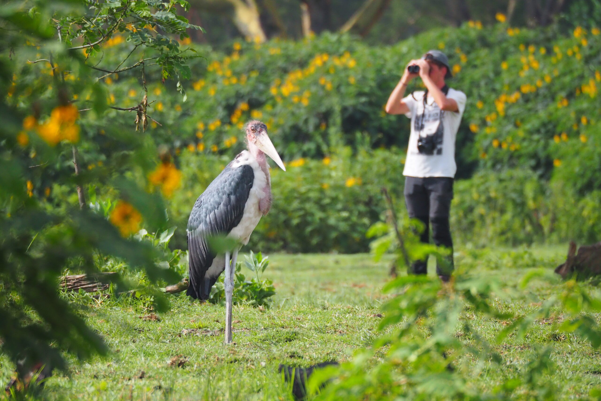 Marabou stork (Leptoptilos crumenifer) and myself
