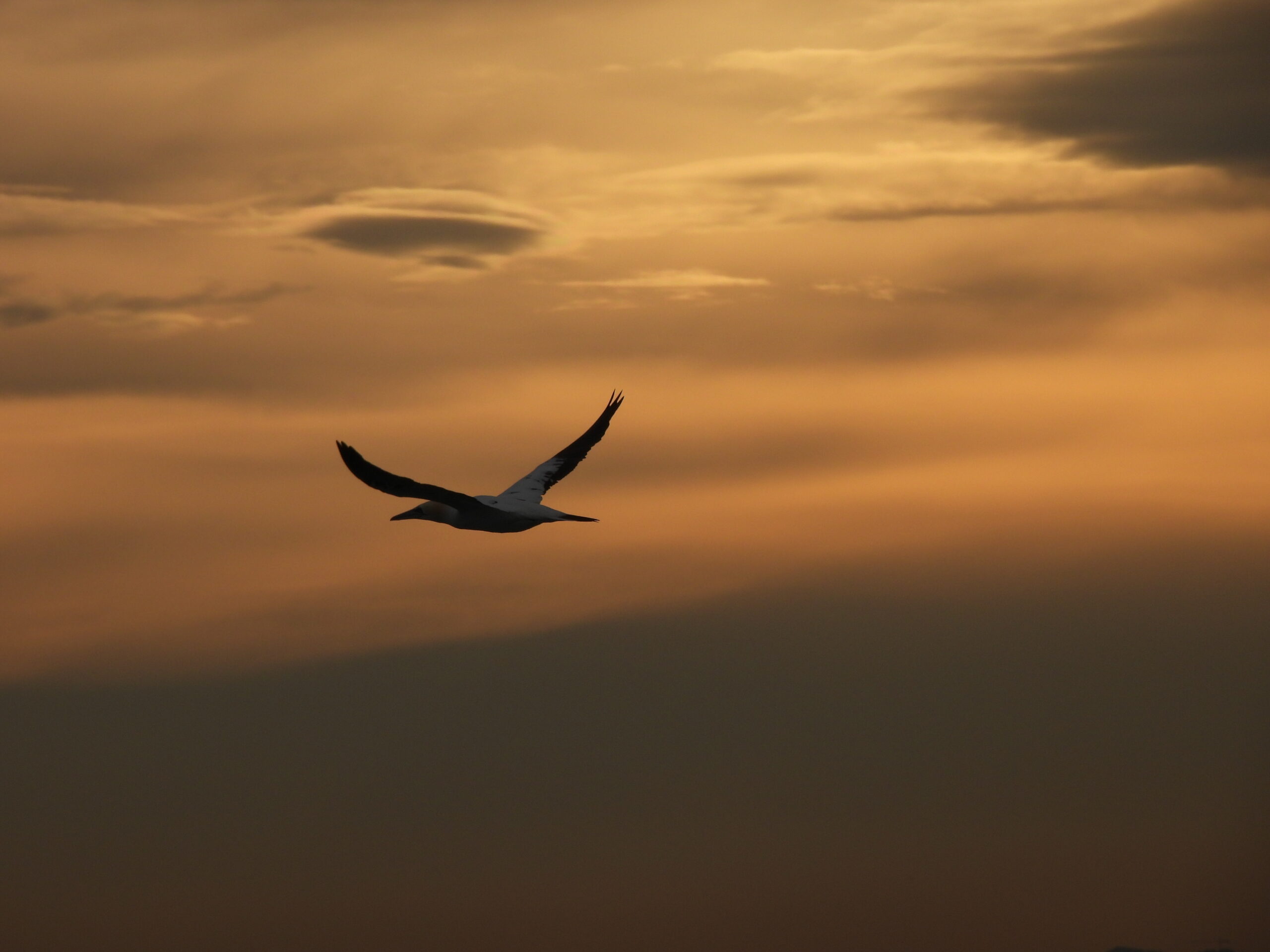 The boobies and gannets (family Sulidae) are a family of birds belonging to the order Suliformes. These large birds are strongly adapted to life in the sea, and are best known by their dramatic plunge-dives from a height into the sea to catch preys, often swimming to chase their preys. Accordingly, they spend most of their lives on the wing at sea. However, they generally forage close to the coast unlike the unrelated tubenoses, adapted to forage in the ocean pelagic zone.
