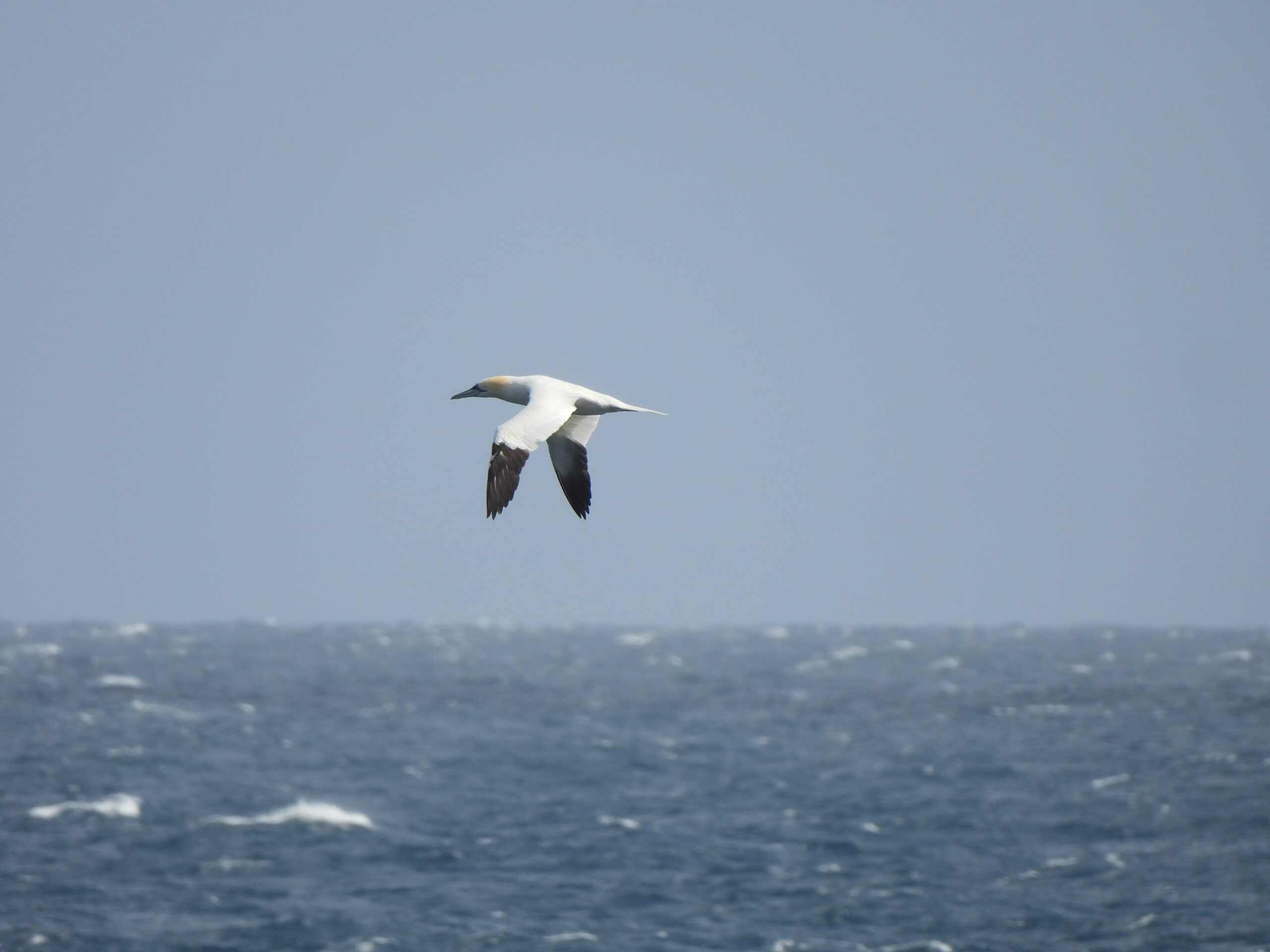 Breeds in offshore islets of Newfoundland and northern Europe from Iceland and Norway to France, with wintering grounds extending south to the Caribbean and Mediterranean seas. Dark-brown juvenile birds progressively incorporate white feathers onto their plumage until reaching the clean white plumage of adults. This species is a regular winter visitor in Alicante.