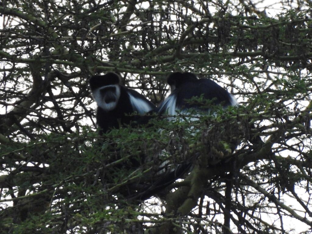 On the lawns, blacksmith lapwings (Vanellus armatus) and hadada ibis (Bostrychia hagedash) foraged alongside grazing plains zebras. These were not the only mammals present, as a troop of mantled guereza (Colobus guereza) watched us from a distant tree.