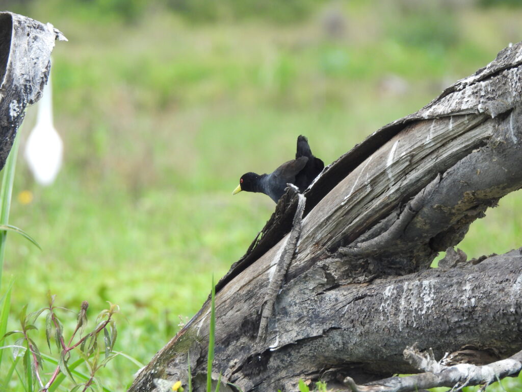 Despite most of them being large and majestic, we also noticed some smaller suspects, such as a black crake (Zapornia flavirostra) walking on the vegetation.