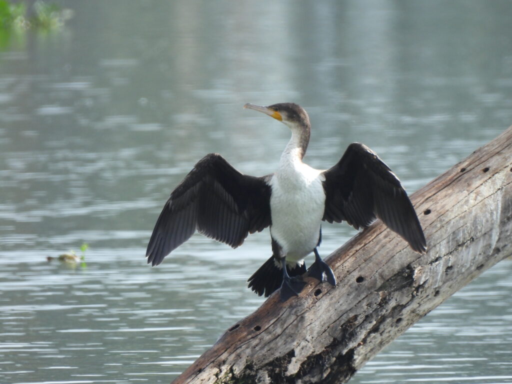 A major highlight was a mixed colony of great white pelicans (Pelecanus onocrotalus) surrounded by a number of individuals of the African white-bellied lucidus form of great cormorants (Phalacrocorax carbo), and some reed cormorants (Microcarbo africanus).