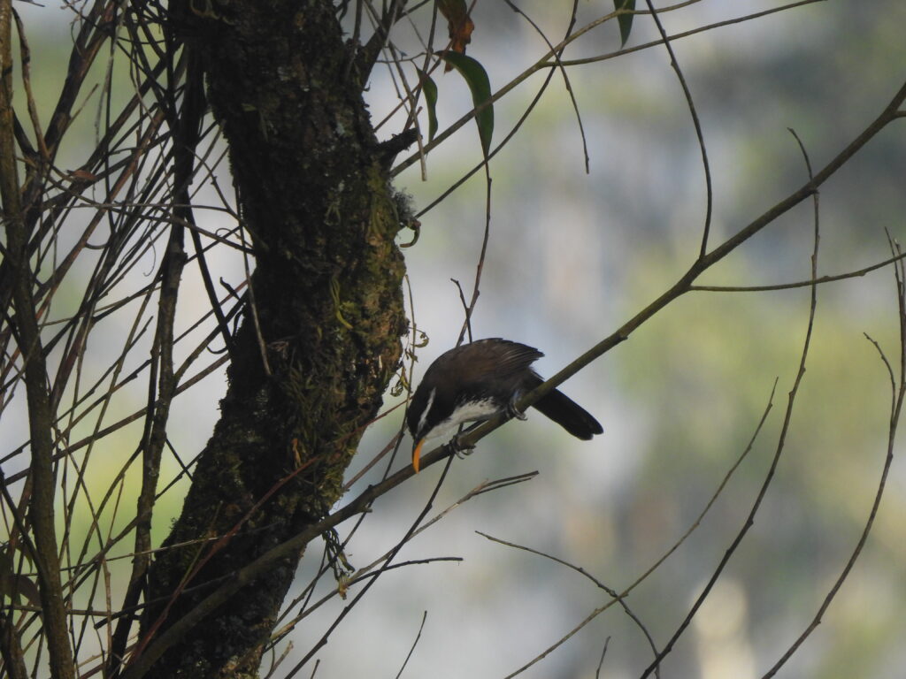 We made it to the top end of the accessible road, still missing a drab, unassuming endemic I was keen to see. We asked the post guard if he had seen any in the area, as I expected the species to be a highland pasture specialist — and indeed, he had just a bit earlier. We scoped the plants around, finding several pied bush chats (Saxicola caprata) and an unexpected plain prinia (Prinia inornata), but to no avail.